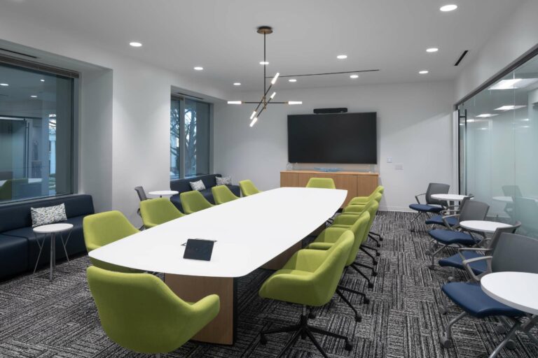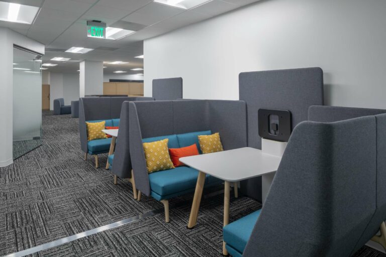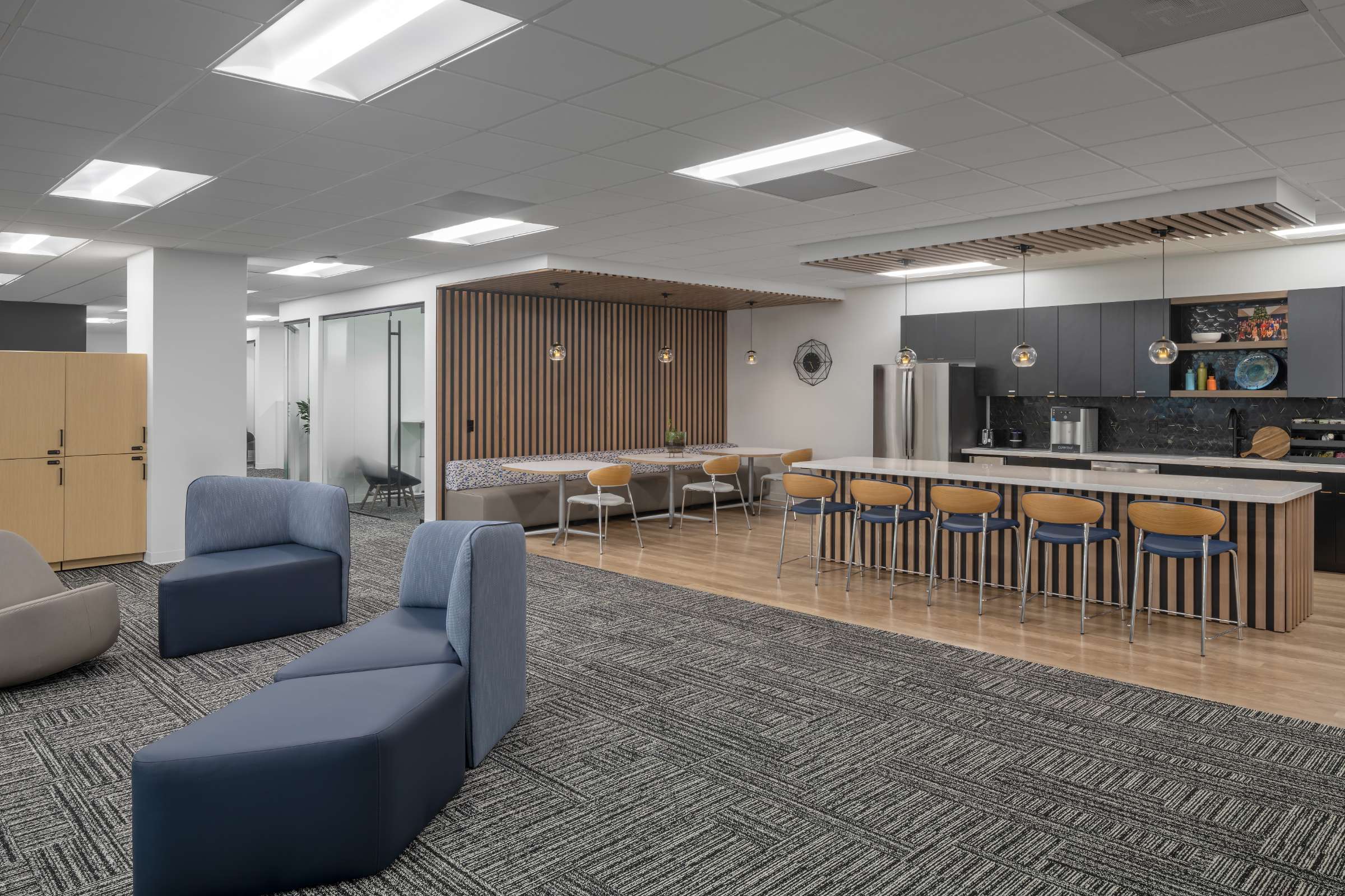 The new space includes a mix of open work areas, meeting rooms, and a centralized break area designed to support both individual work and team collaboration. The layout replaces private offices and high-panel workstations with a more flexible plan that improves functionality and workplace connectivity.