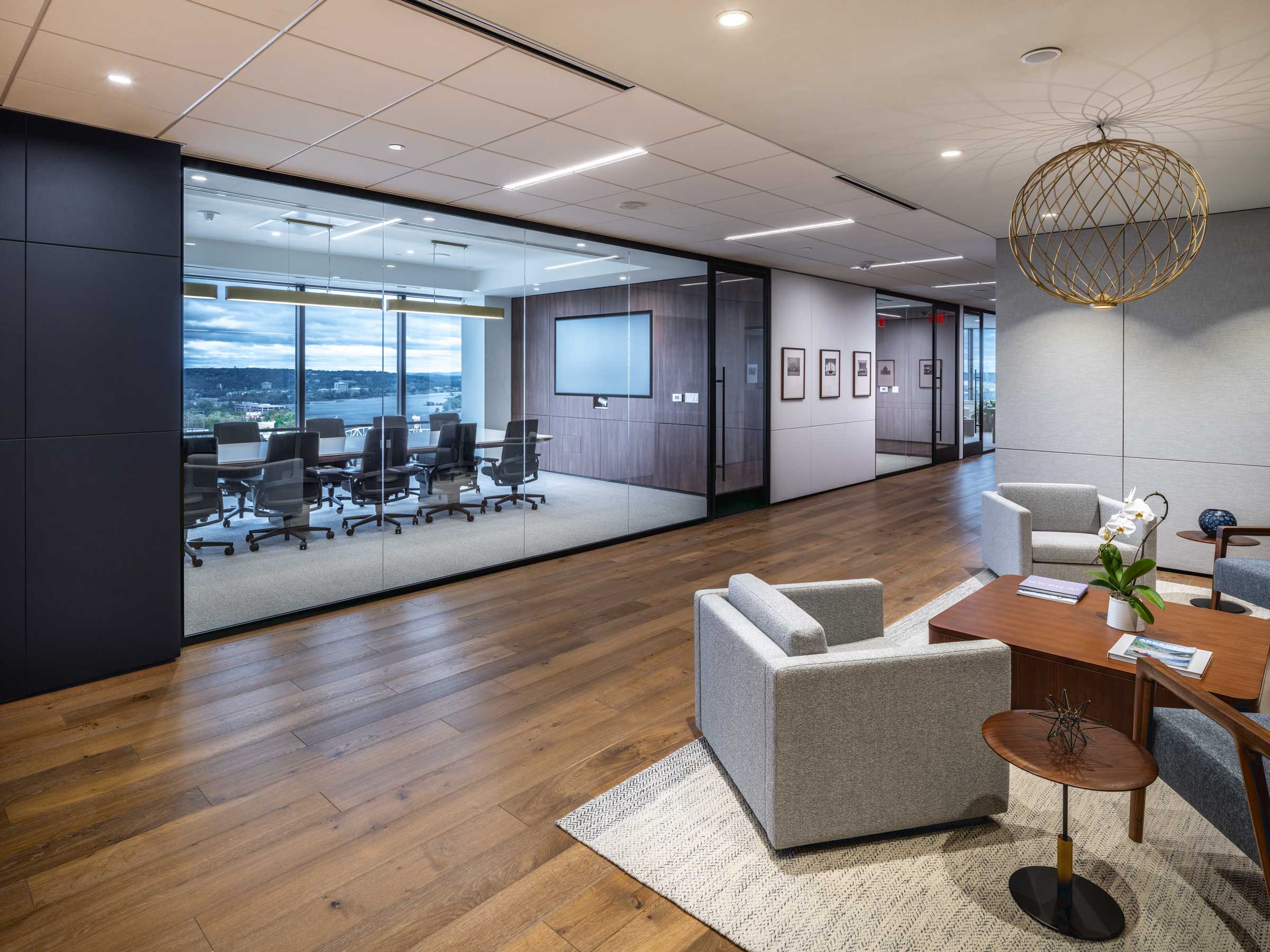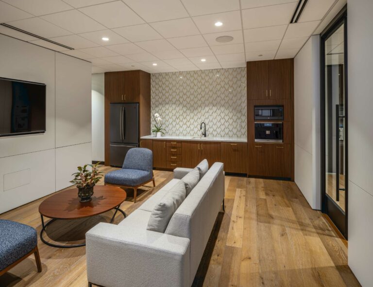 This project involved the full demolition and buildout of a 9,691 SF private family office. The high-end space was constructed using prefabricated components to accelerate the schedule while maintaining exceptional quality and craftsmanship aligned with the overall design vision. The scope of work included private offices, two boardrooms, an executive breakroom, reception area, upgraded core restrooms, and a dumbwaiter to facilitate catering deliveries from the building’s dining level to the office.
