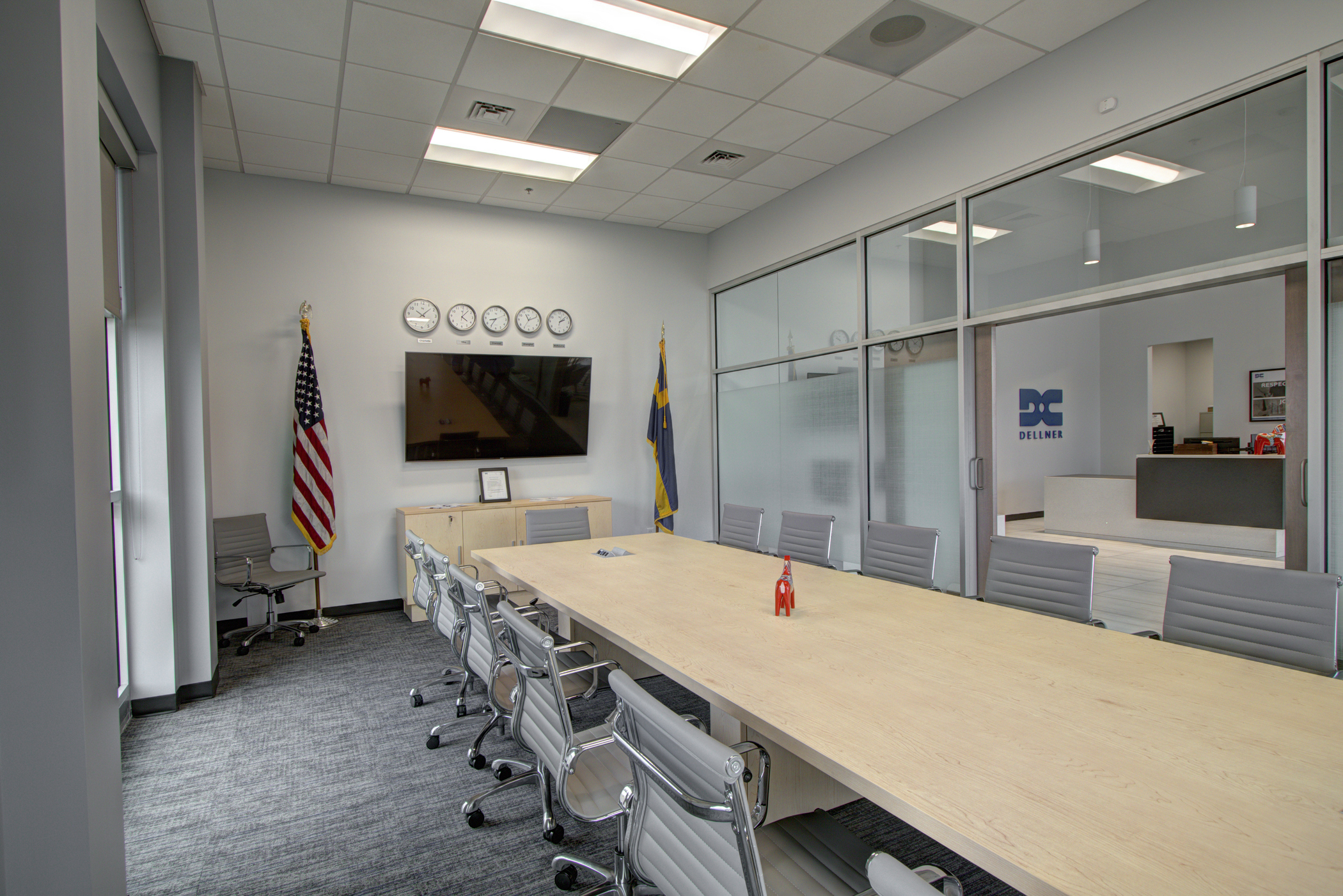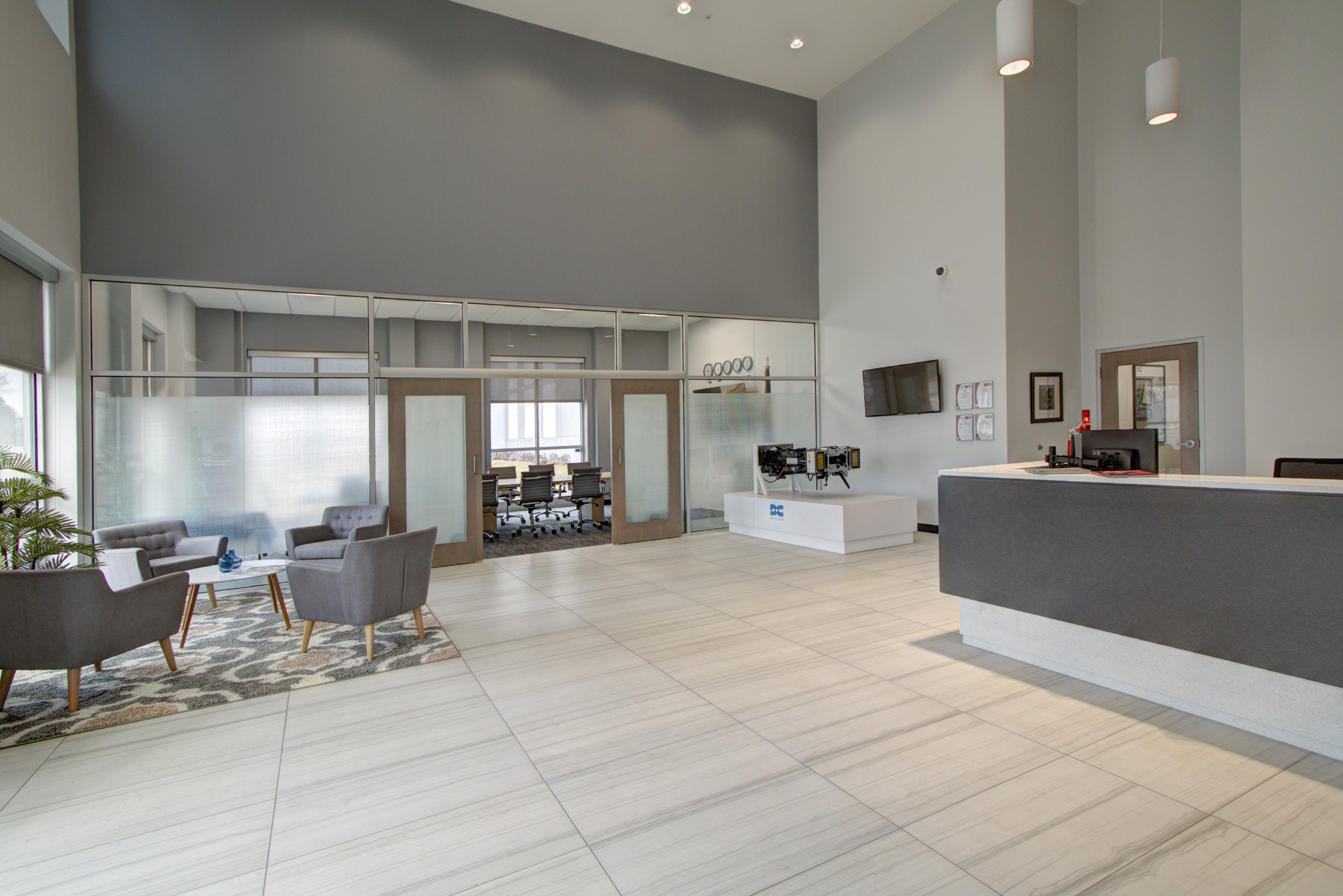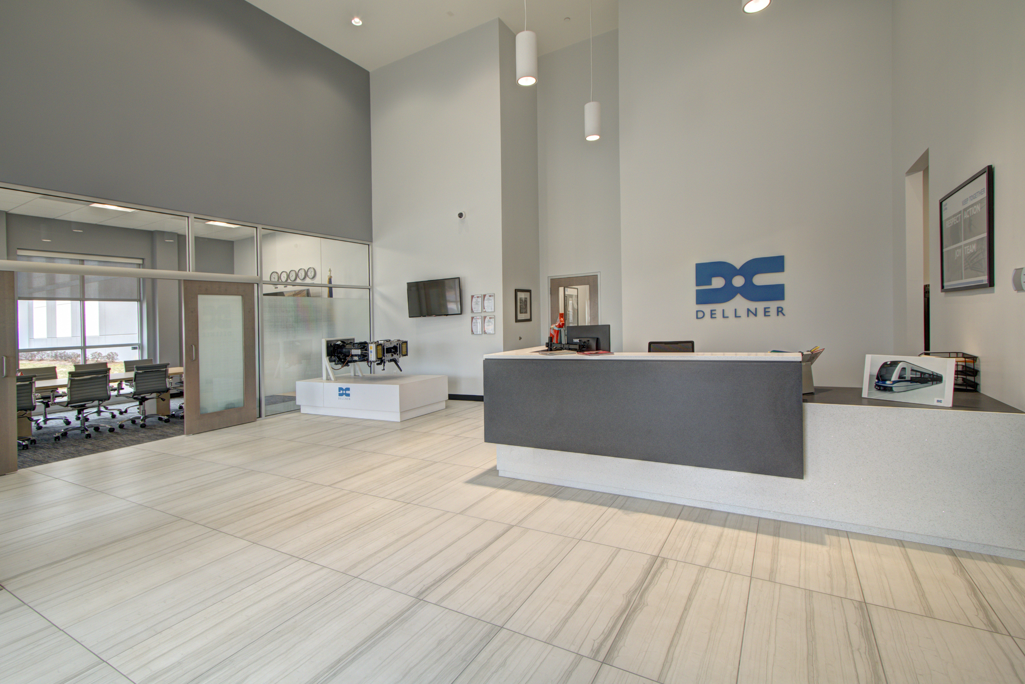 Dellner selected Playbook to lead its new 56,375 SQFT United States HQ relocation and construction upfit project. Playbook’s involvement included due diligence support prior to the Dellner purchase of the new facility. The new space included corporate office and warehouse/production space. The office project elements included a new two-story reception lobby, boardroom, meeting rooms, private offices, breakroom, locker rooms and open office space. Manufacturing space included new loading dock ramps, openings, levelers, high-pile racking storage and overhead cranes. Playbook also managed a smaller turnkey upfit project for Dellner’s tenant on the east side of the facility.