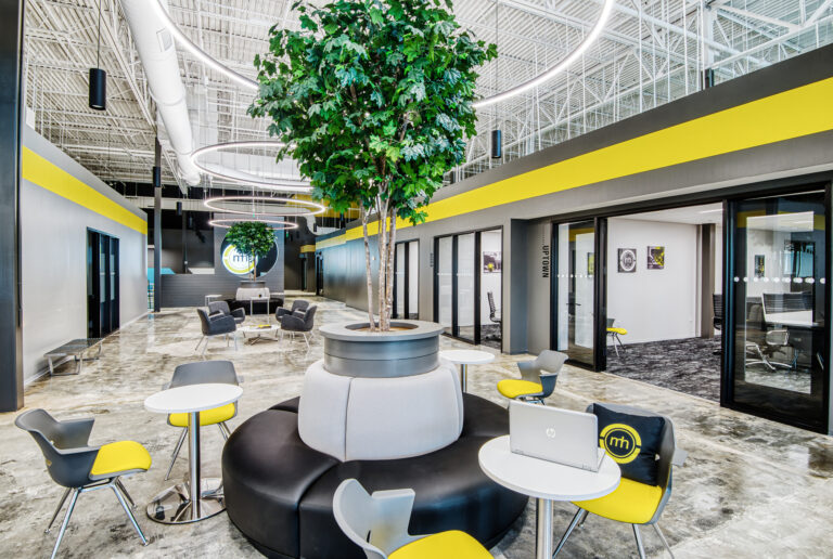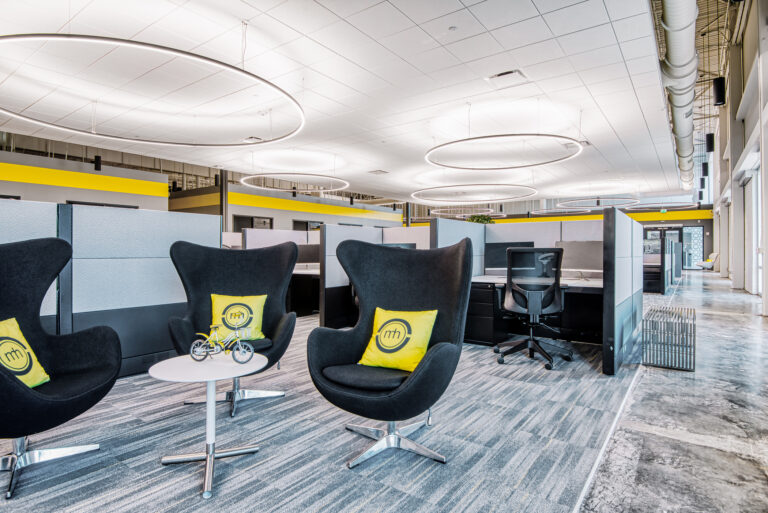 Maestro Health hired Playbook to manage the relocation and construction buildout of a converted big box store into 31,475 SQFT of new office space for its call center. This adaptive reuse project included 192 workstations, multiple conference rooms, breakroom, reception area and a large atrium with banquette seating.