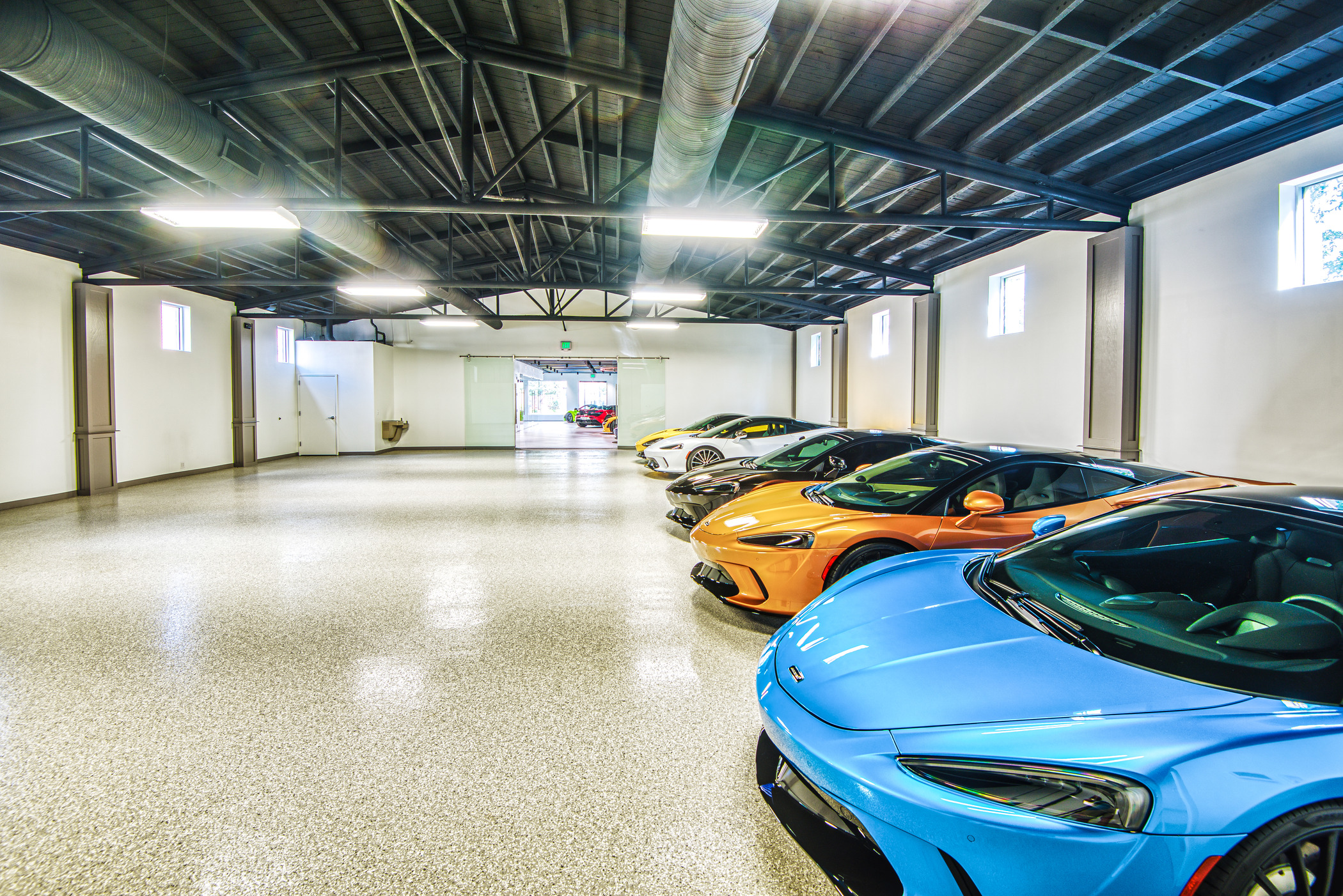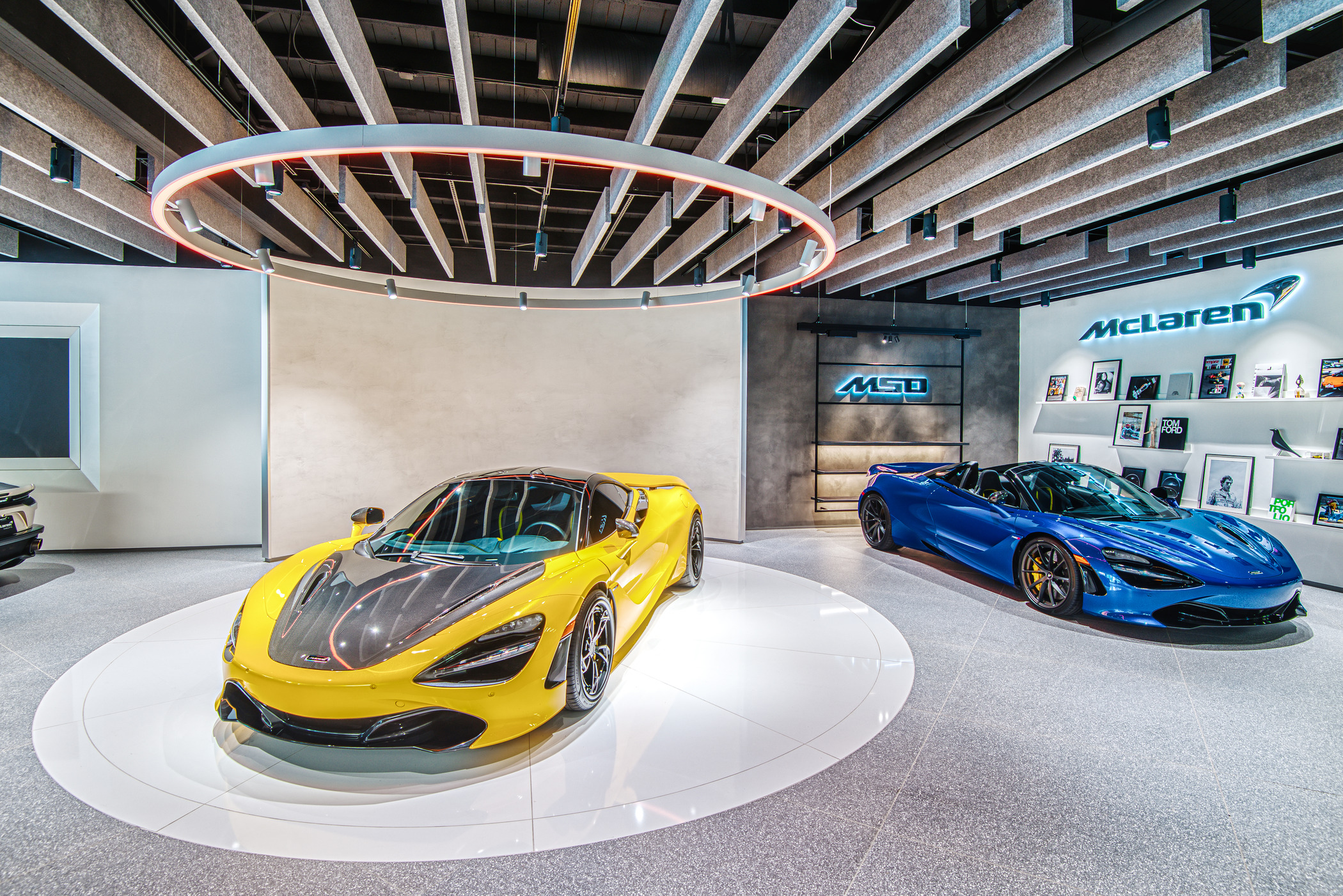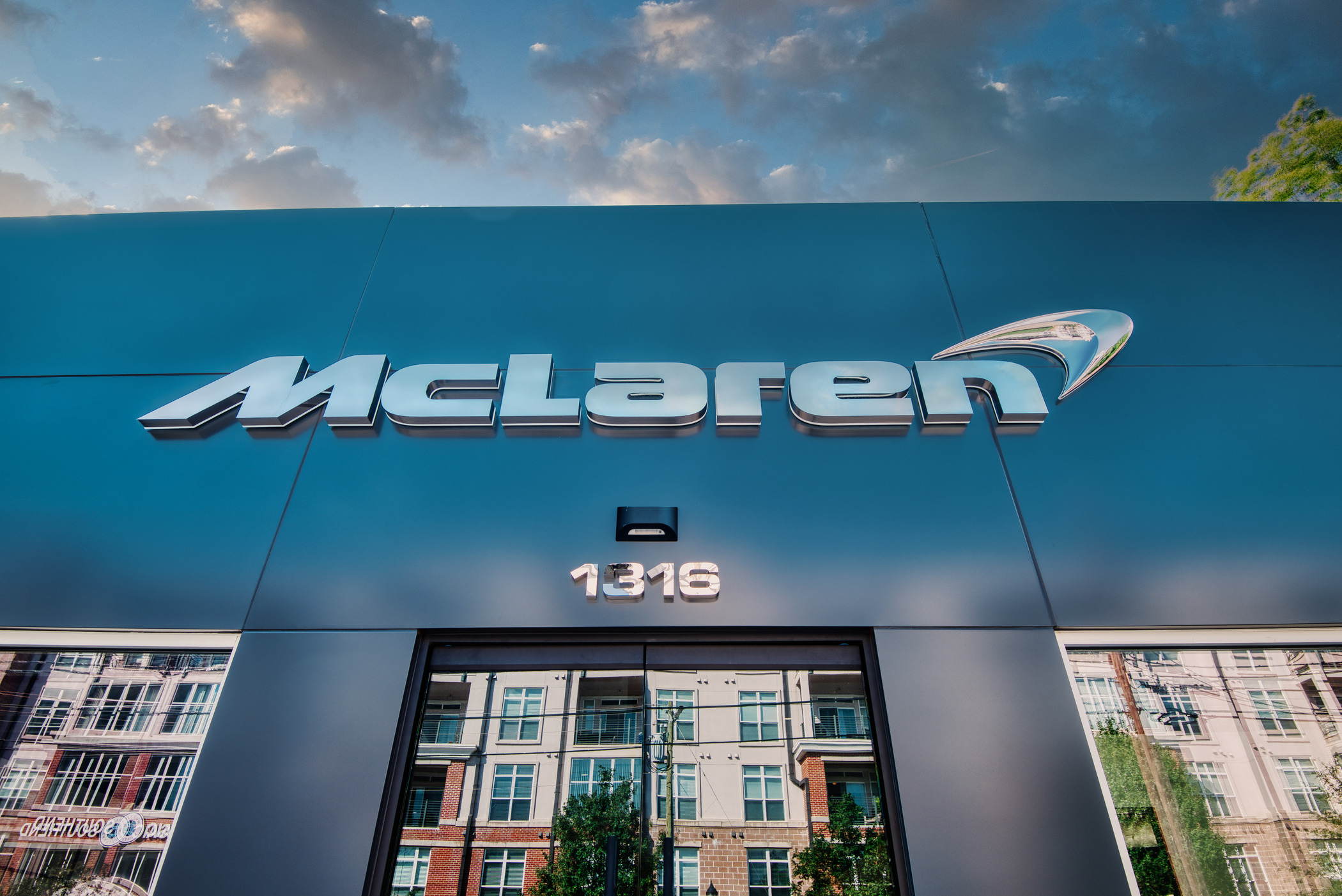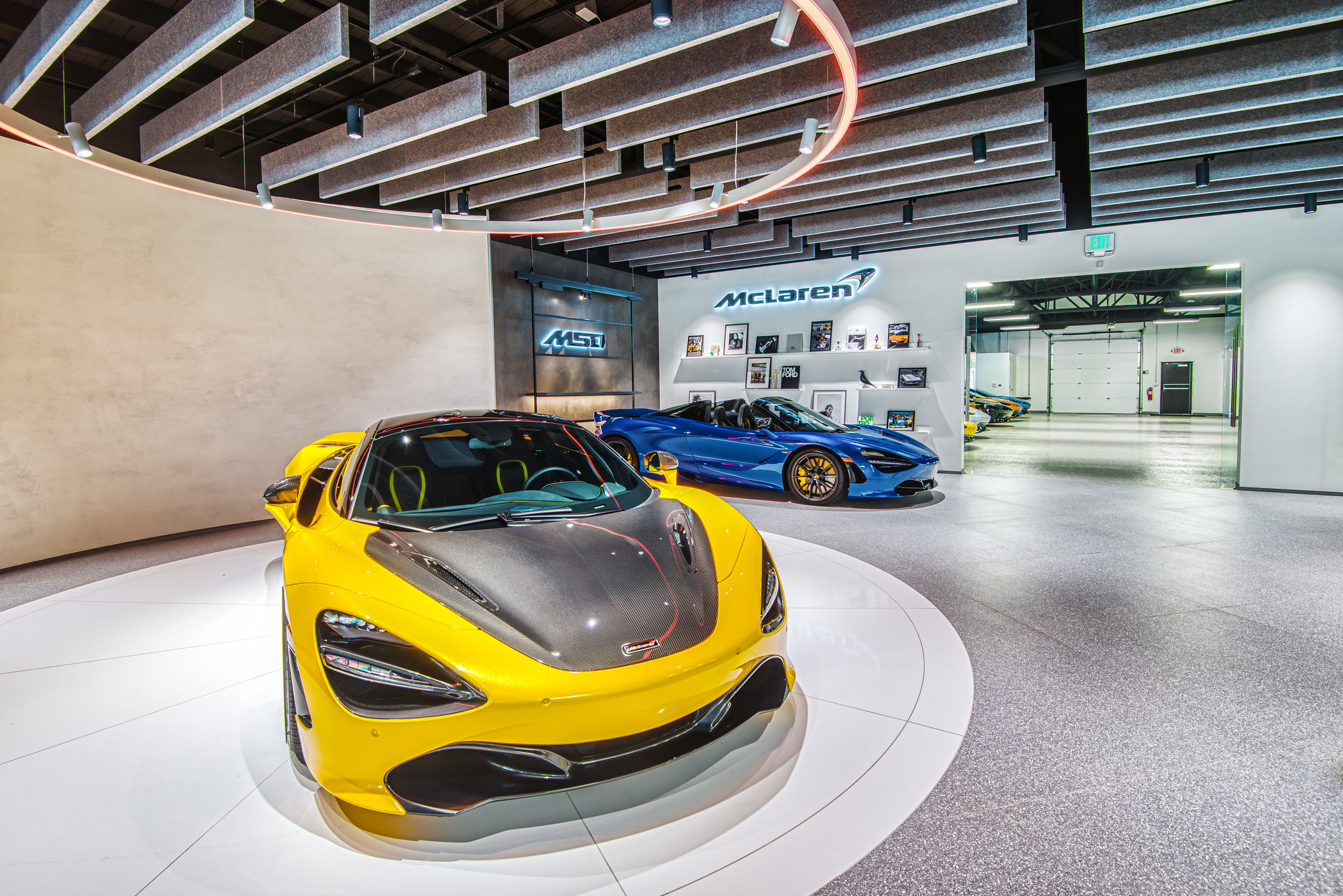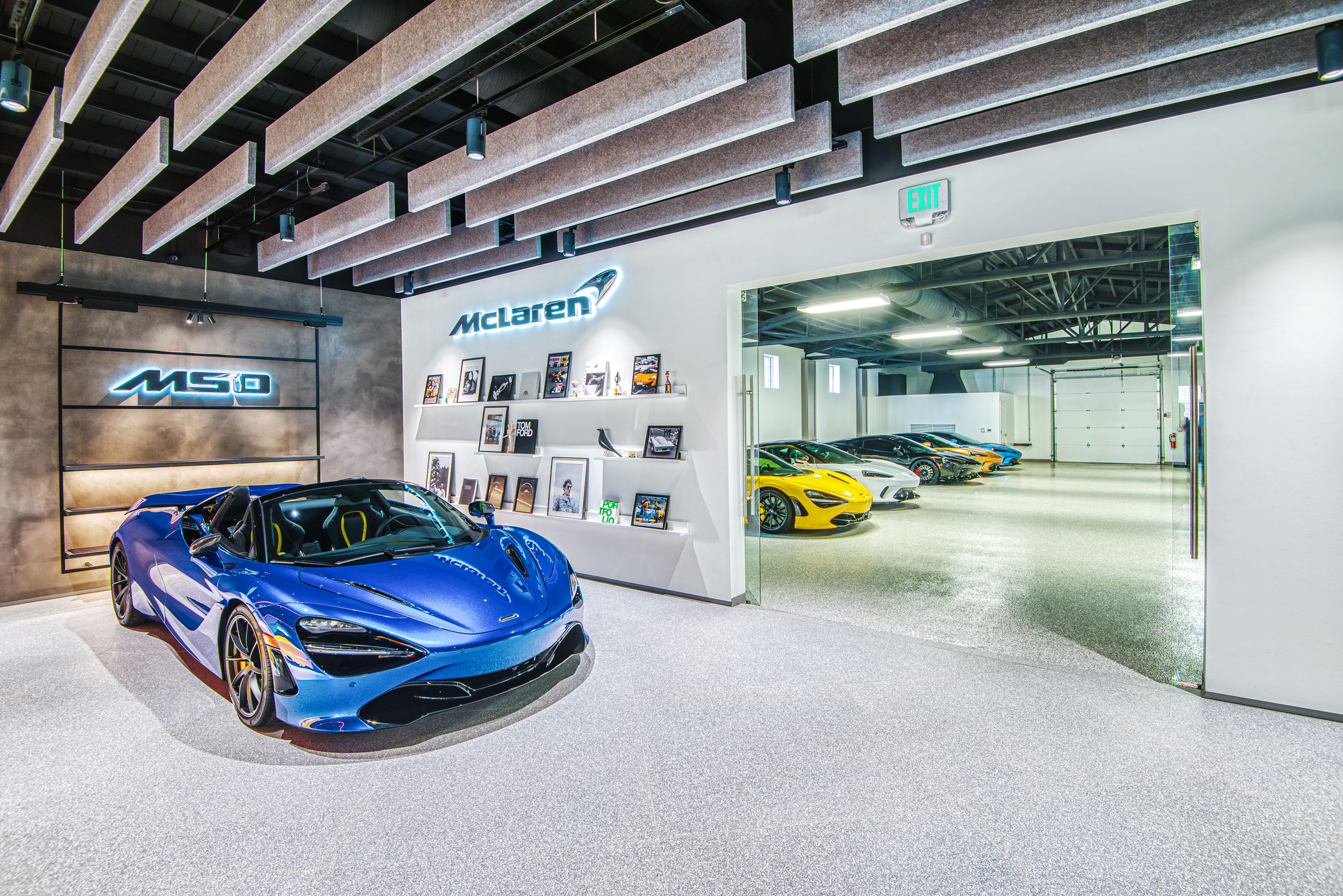 McLaren Charlotte chose Playbook as their project management partner to renovate an existing 9,000 SQFT dealership into a new McLaren Dealership. The exterior of the building was refaced with aluminum composite metal panels, new windows, glass entry doors and exterior lit sign. The showroom space included design elements of large ceramic floor tiles, baffle ceilings, new lighting, high-end office and lounge furniture, touch-screen configuration displays and a video wall featuring a direct feed of the McLaren manufacturing facility in England.