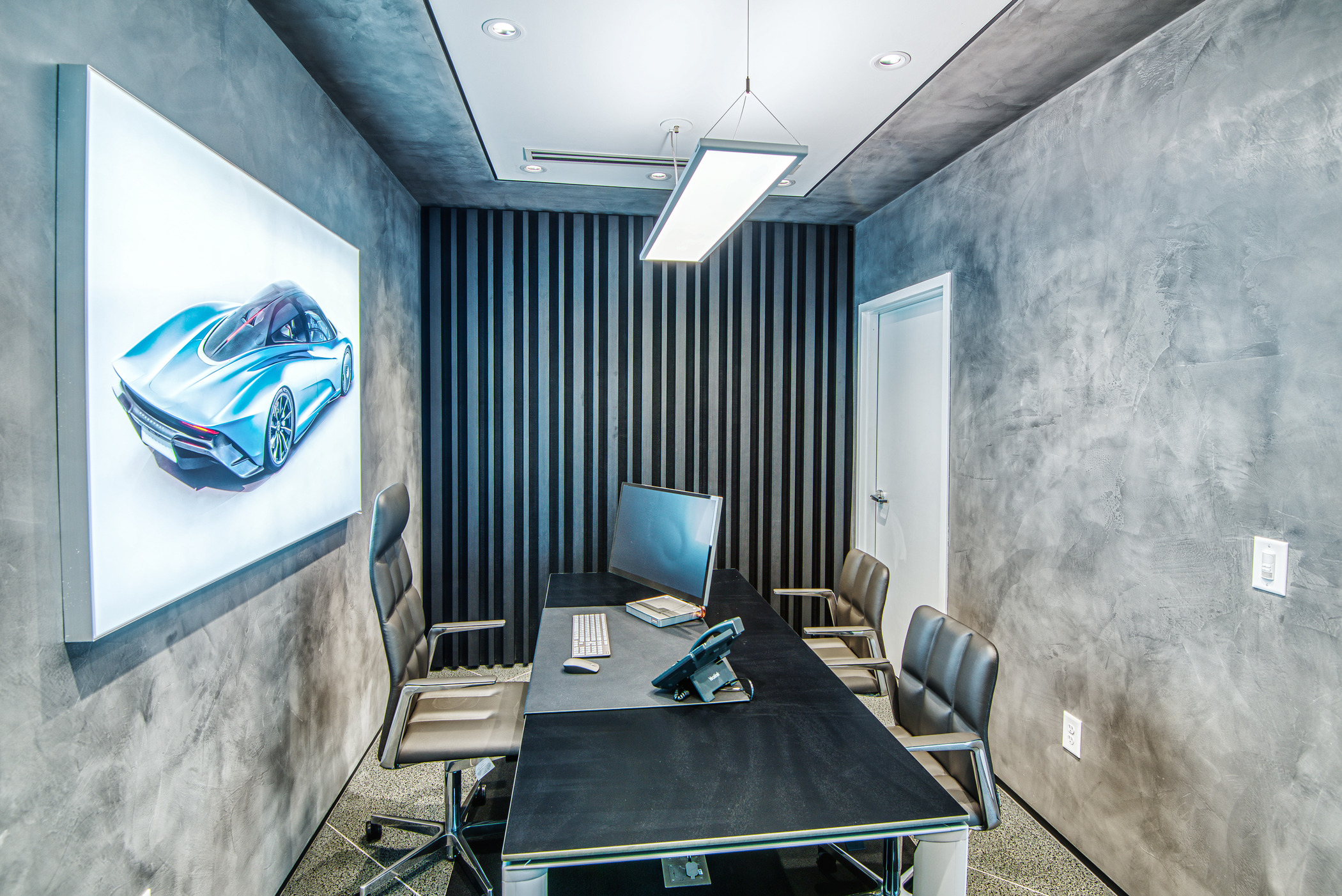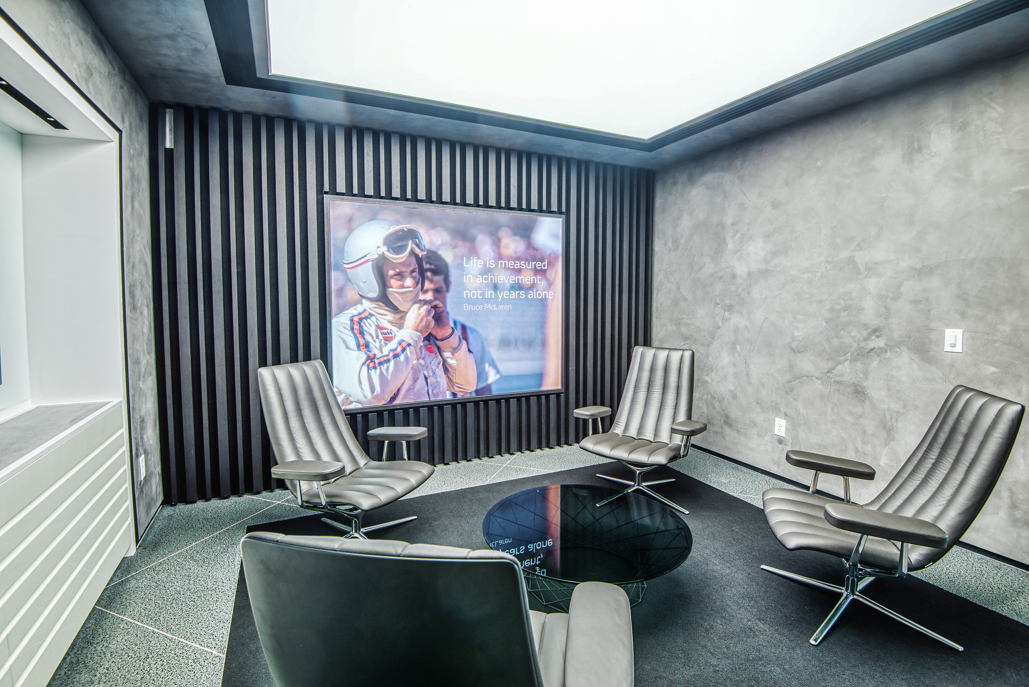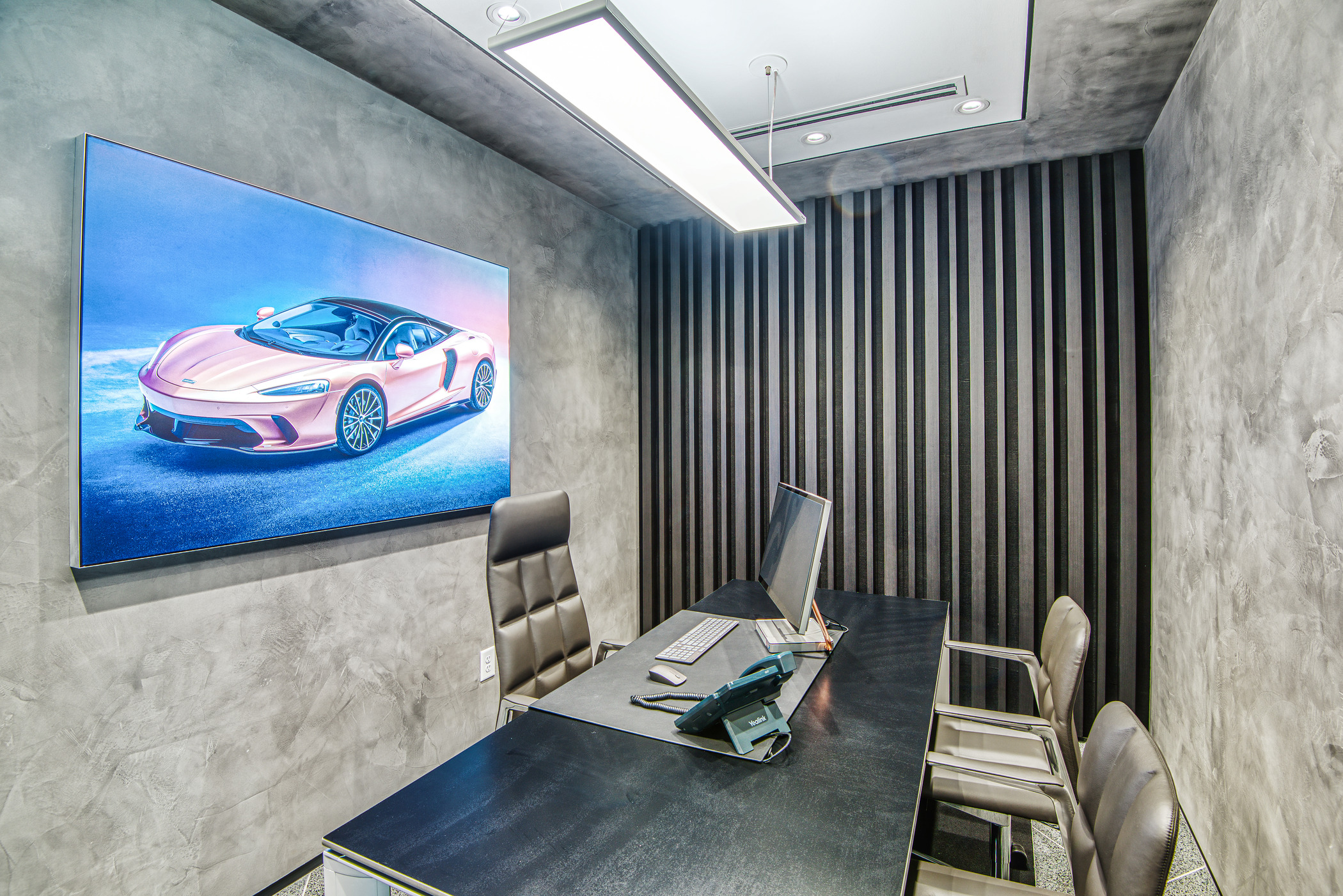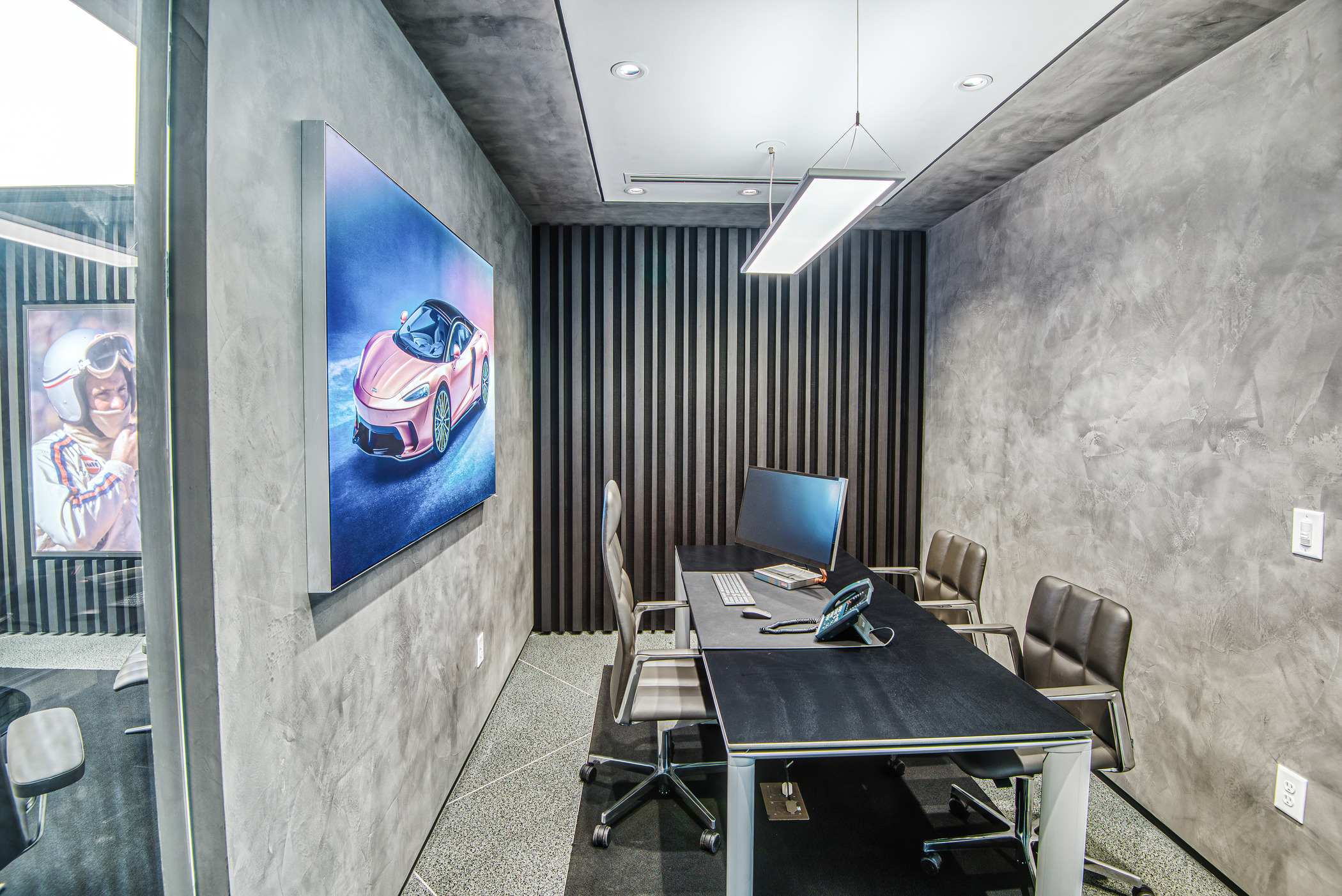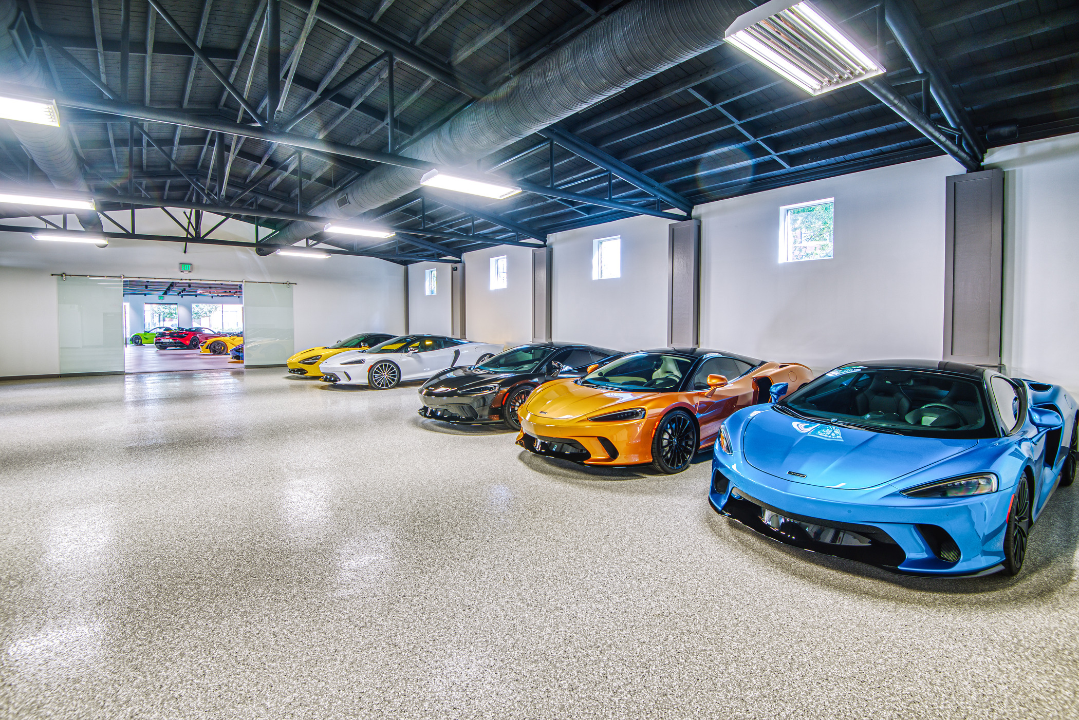 McLaren Charlotte chose Playbook as their project management partner to renovate an existing 9,000 SQFT dealership into a new McLaren Dealership. The exterior of the building was refaced with aluminum composite metal panels, new windows, glass entry doors and exterior lit sign. The showroom space included design elements of large ceramic floor tiles, baffle ceilings, new lighting, high-end office and lounge furniture, touch-screen configuration displays and a video wall featuring a direct feed of the McLaren manufacturing facility in England.