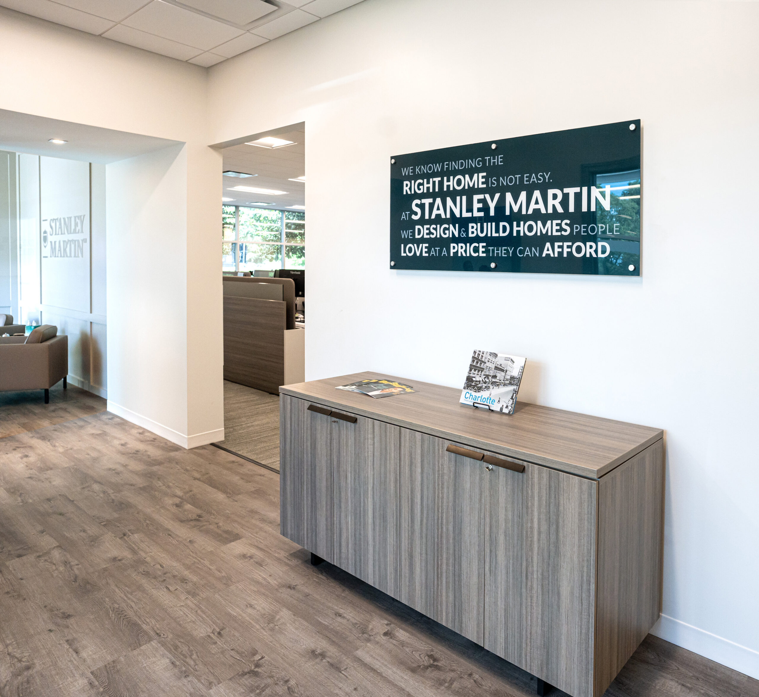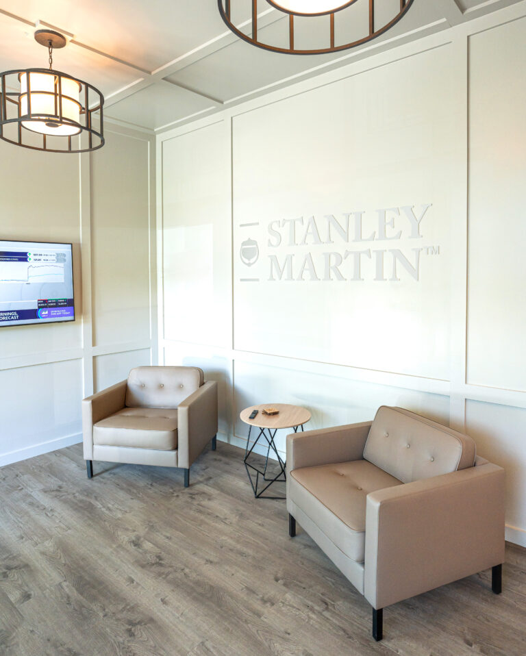 Stanley Martin, a leading Southeast homebuilder, partnered with Playbook for the first of three office projects in the Carolinas. The space was designed to support both client engagement and daily operations, featuring a dedicated showroom for client visits and finish selections alongside a separate office area for staff.