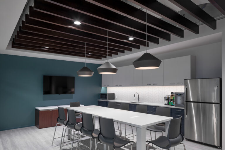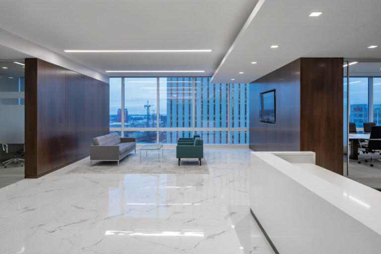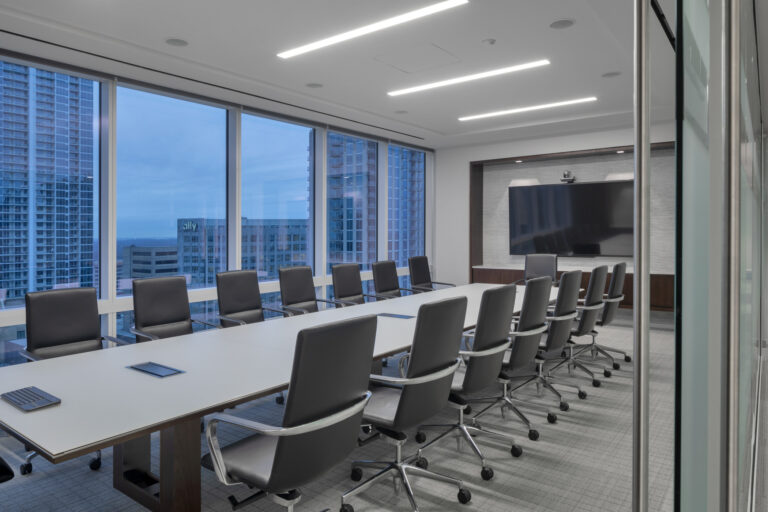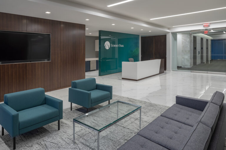 This was Playbook’s fifth project in 300 S. Tryon. Summit Park hired Playbook to manage their relocation and upfit project from Midtown to Uptown Charlotte. This 8,696 SQFT project included a new reception lobby with a large tile floor and wood veneer panels, open office space, executive office, multiple conferencing space, open ceiling breakroom and executive boardroom.