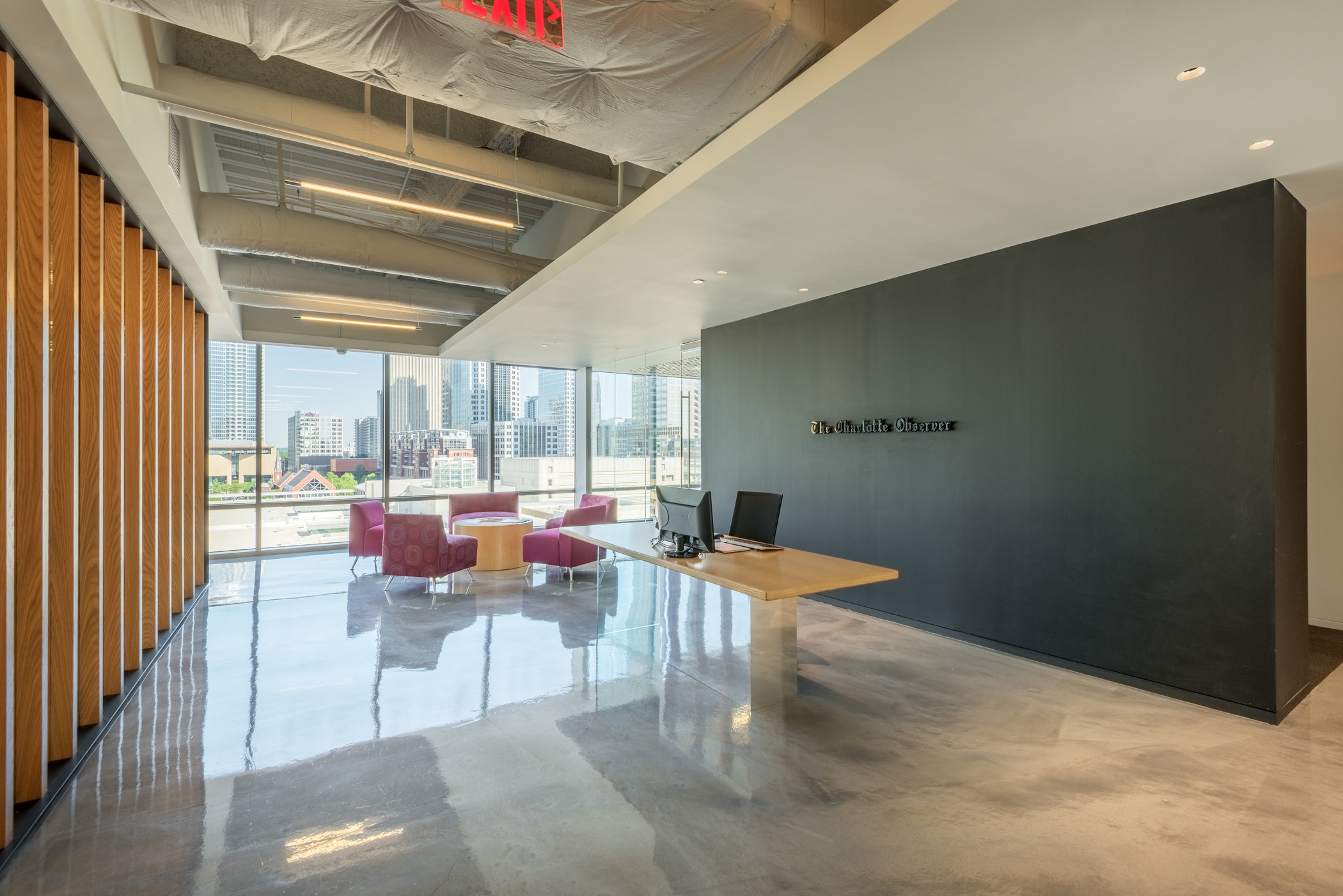 The Charlotte Observer hired Playbook to lead and manage their historic relocation from their 1971 headquarters to new Class A office space at Nascar Plaza. The Observer’s new 60,000 SQFT space included renovations and the buildout of a newsroom media wall, training, conferencing and breakroom areas.