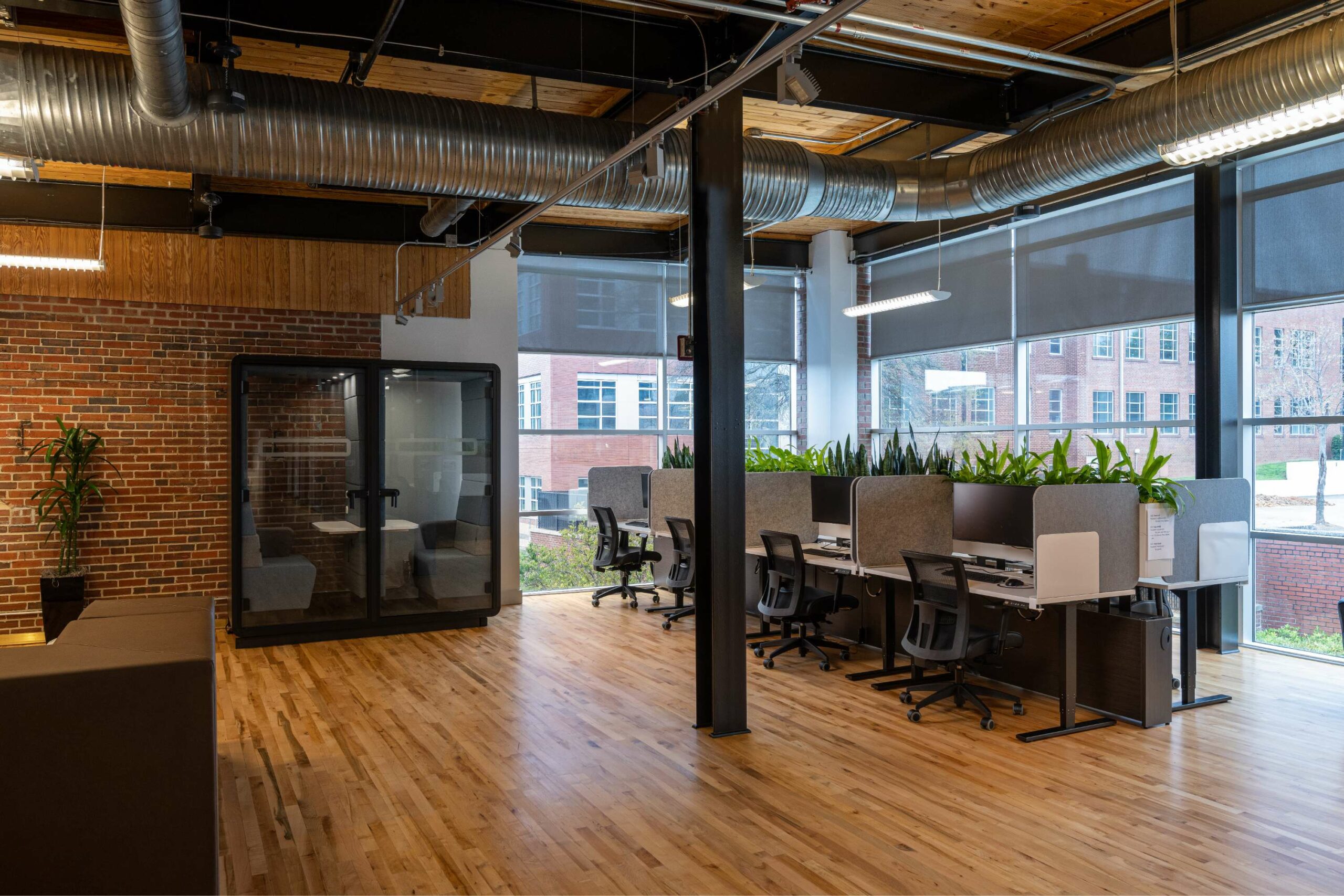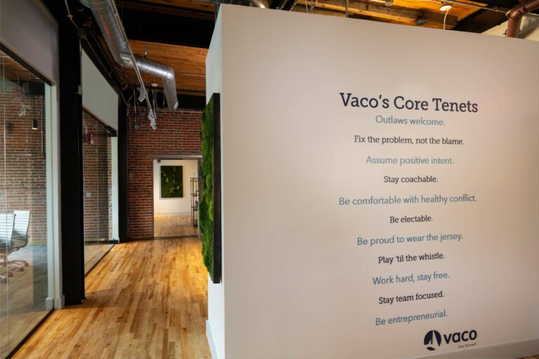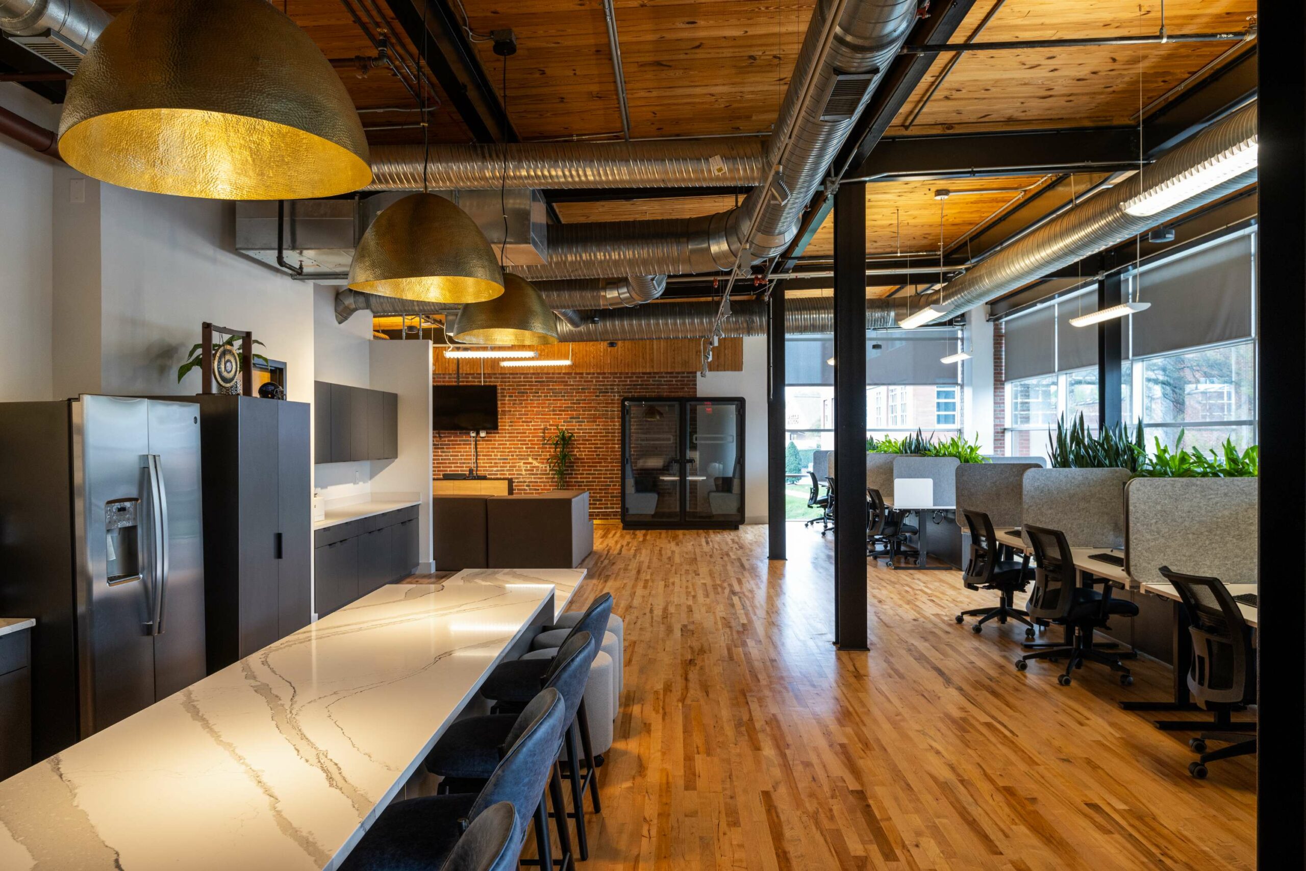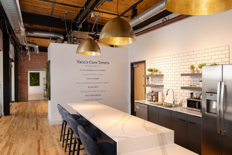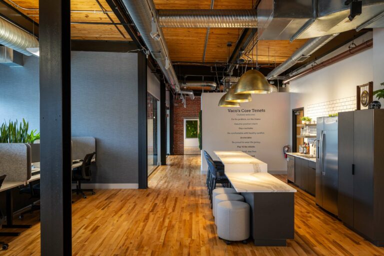 Vaco engaged Playbook to manage its relocation and office upfit within the historic Grinnell Water Works Building. The project embraced the building’s character, incorporating open ceilings, exposed brick walls, and wood flooring throughout the space.