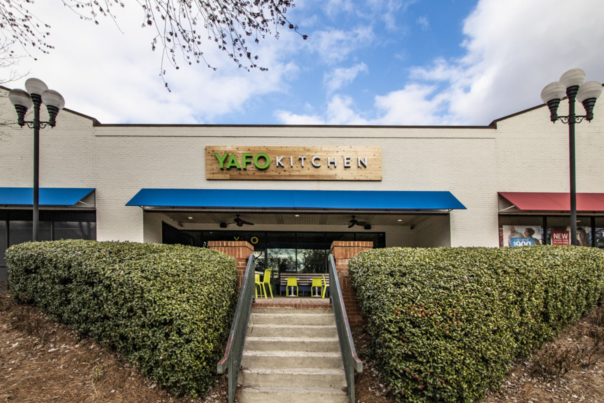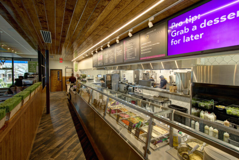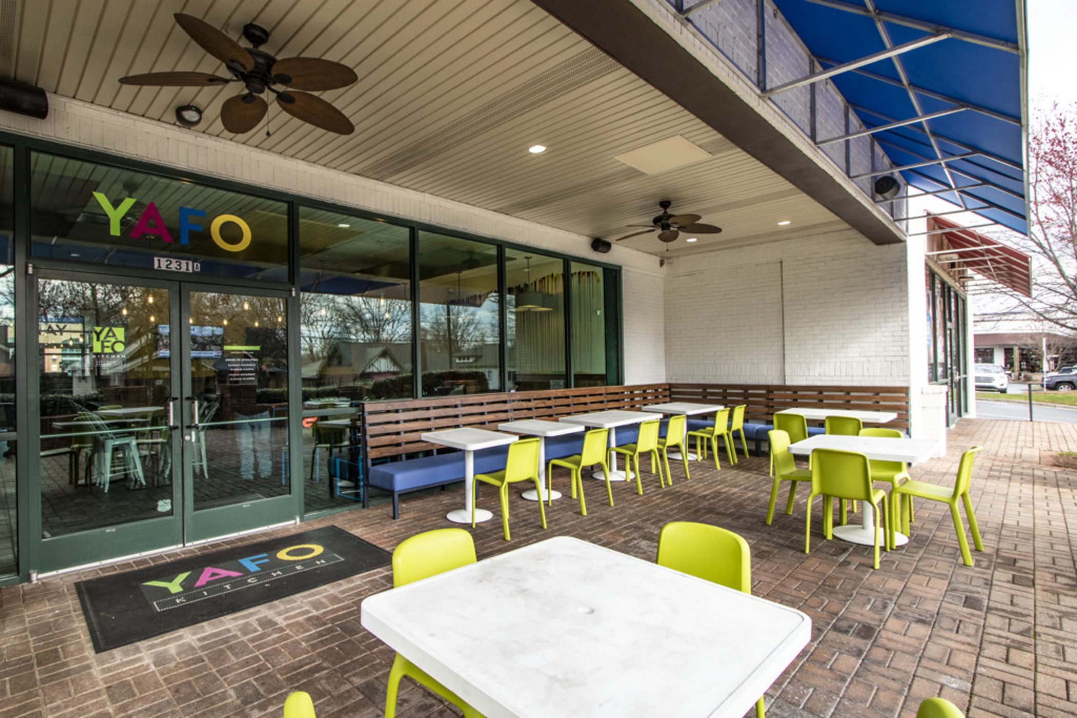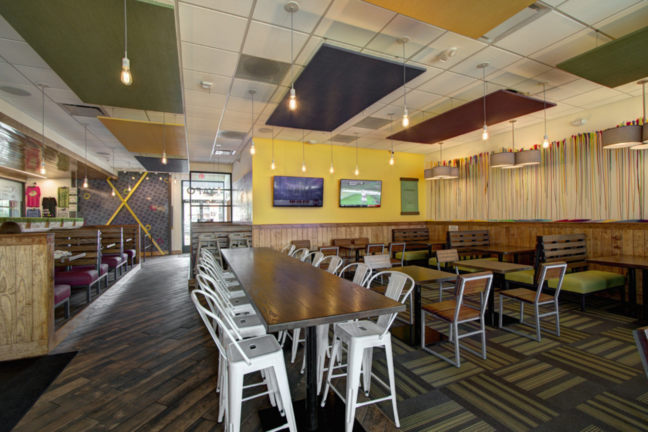 Yafo Kitchen hired Playbook for their new location on East Boulevard in Dilworth. Yafo renovated the 3,710 SQFT existing restaurant space to align with their brand and concept. The new space was Yafo’s third location in Charlotte and design elements included artist murals, custom dining booths, wood walls and ceiling, and an outdoor patio.